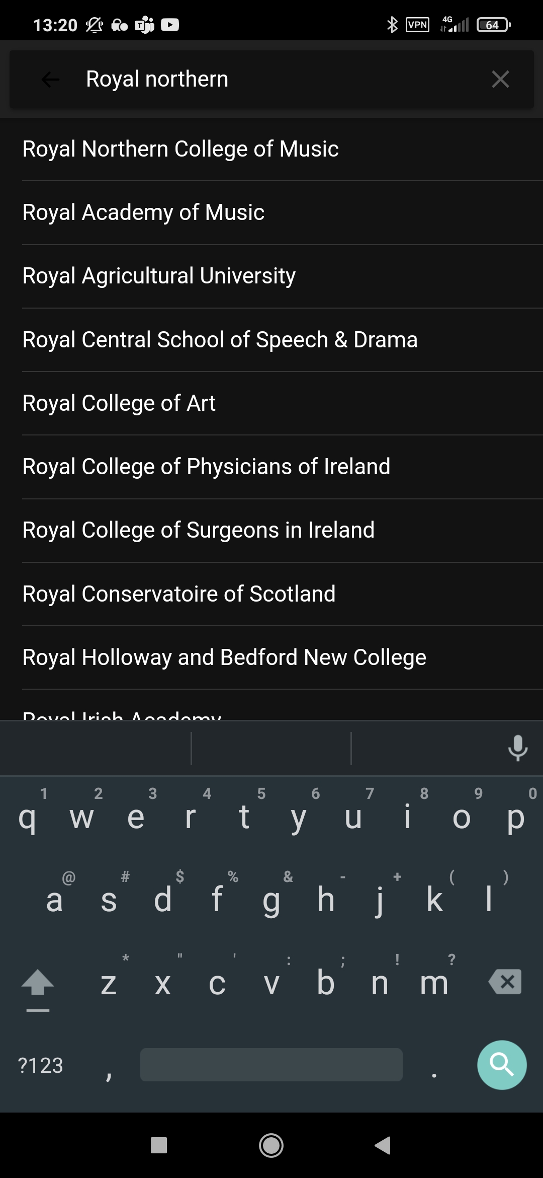 • Search for the Royal Northern College of Music (RNCM will not work) and select it